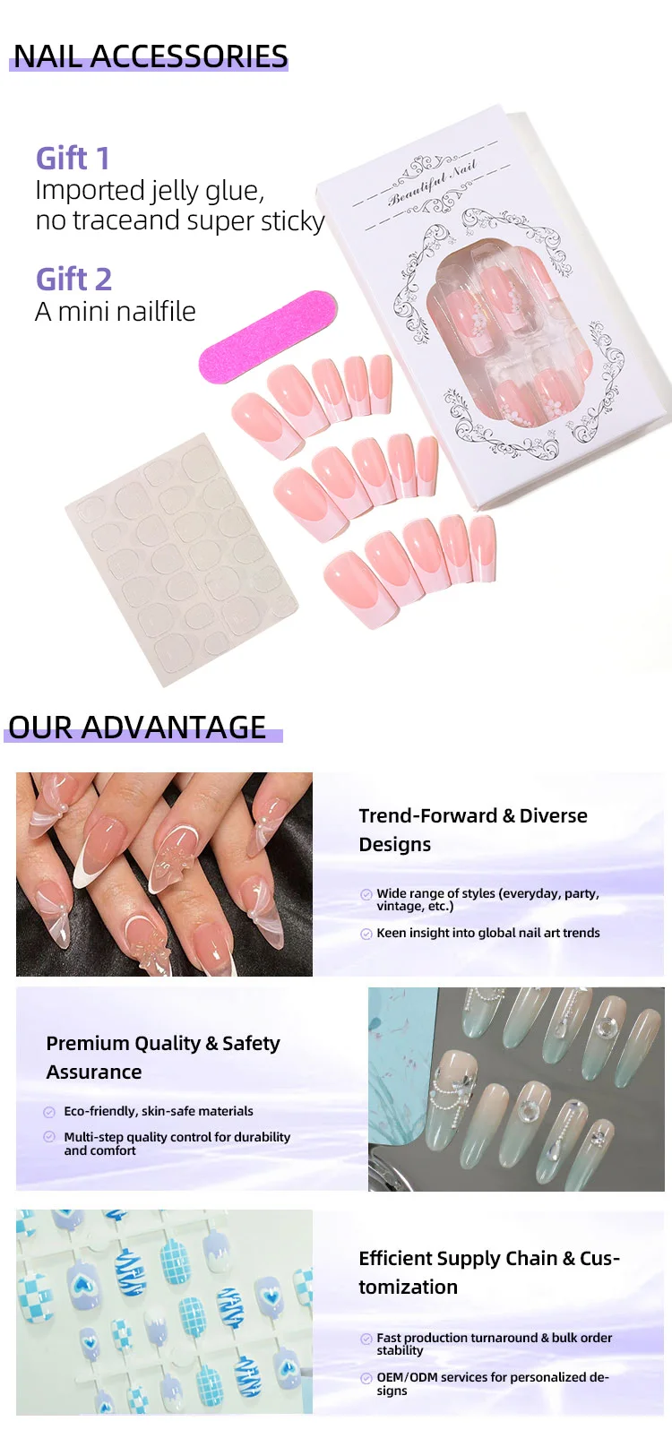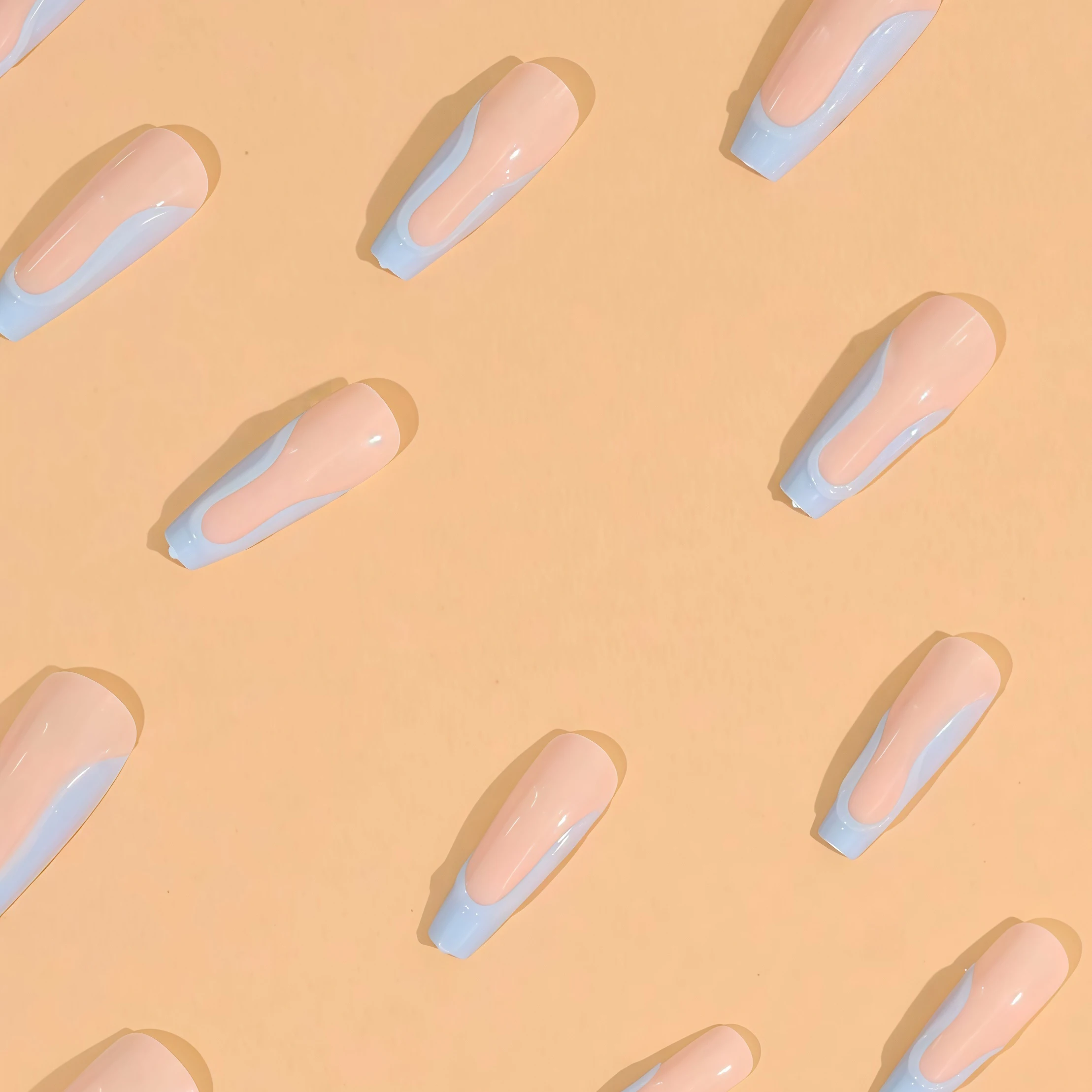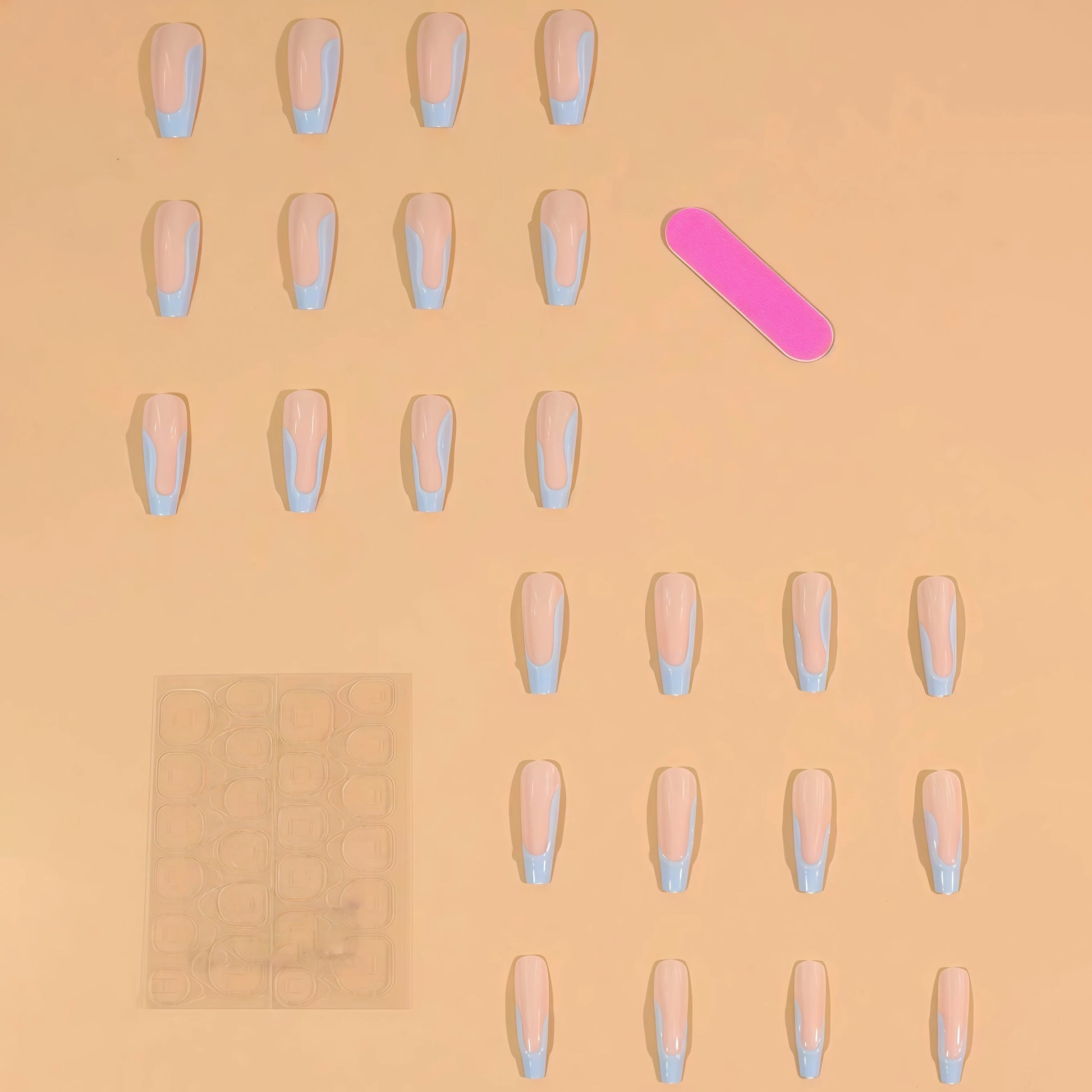24pcs 3D Dimensional French Square Sky Blue ABS Acrylic Press-on Full Cover Fingernails Minimalist Luxury