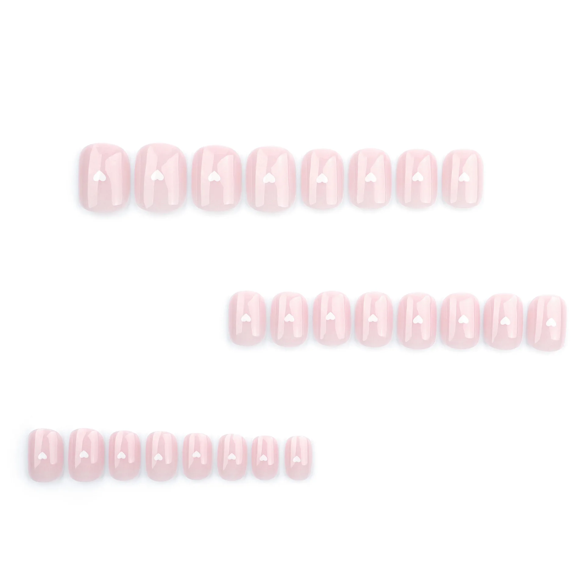 24Pcs Nude Color Fake Nails Short Square Head Press on Nails White Heart Printed Valentine's Day Full Cover False Nails Tips
