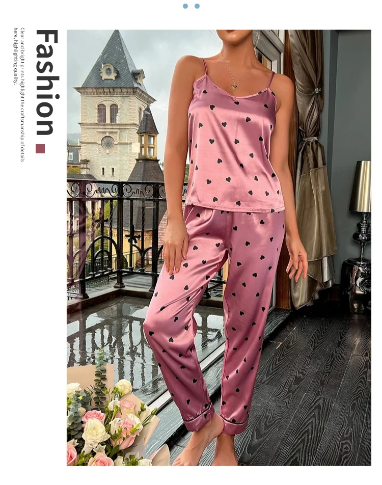 Women satin pajama set with soft and smooth silky feel fabric, will keep you easeful while sleeping at nightPajamas for women cami top is designed , floral print, sleeveless and v necklineThis pajama pants for women have an elastic waistband and tie front, perfect for relaxing evenings at homeThe sleepwear set is perfect choice for Wedding Night, Honeymoon, Valentine's Day, Anniversary, Bedroom, Bathroom, loungewear, sleepwear etc.