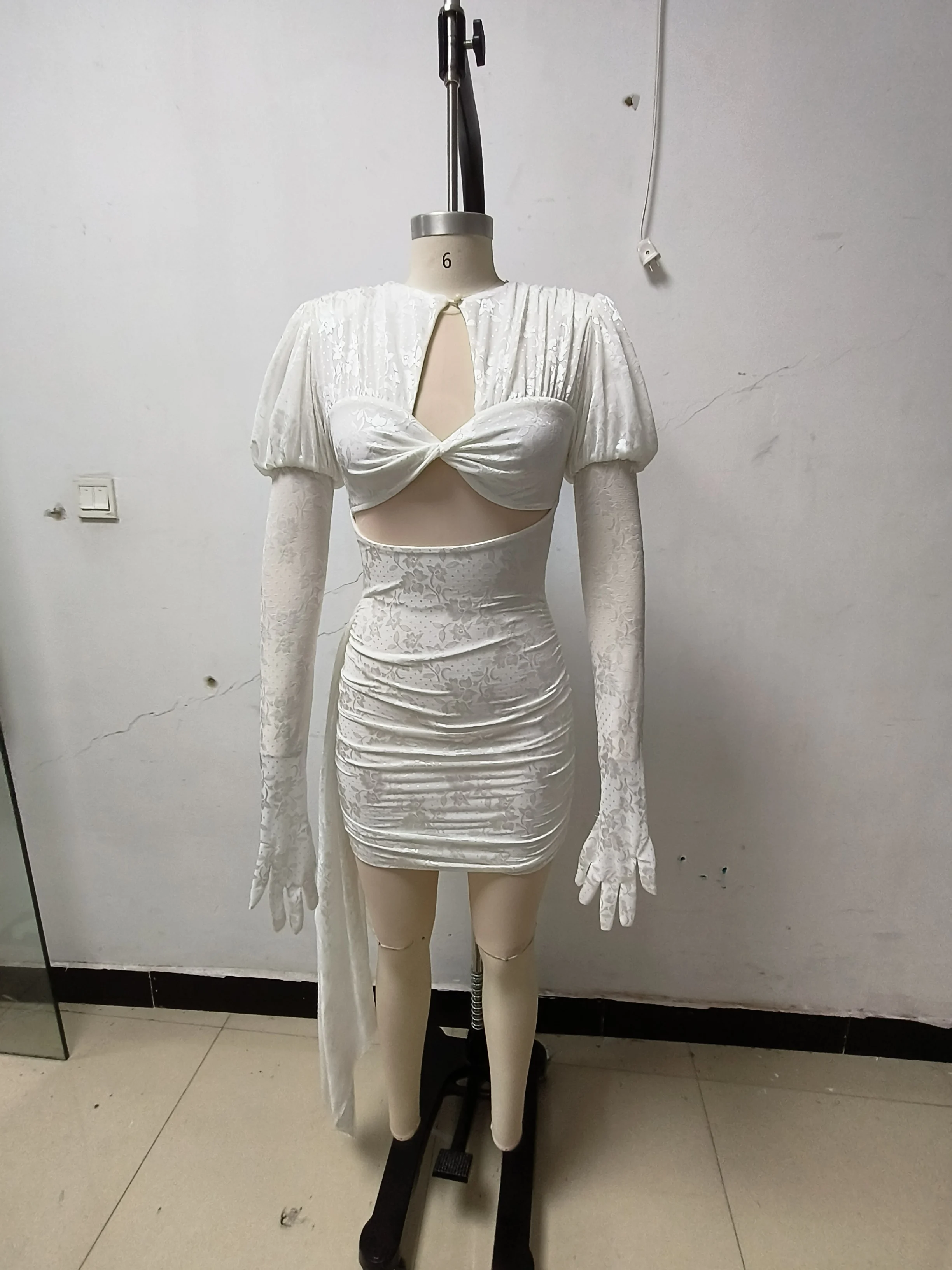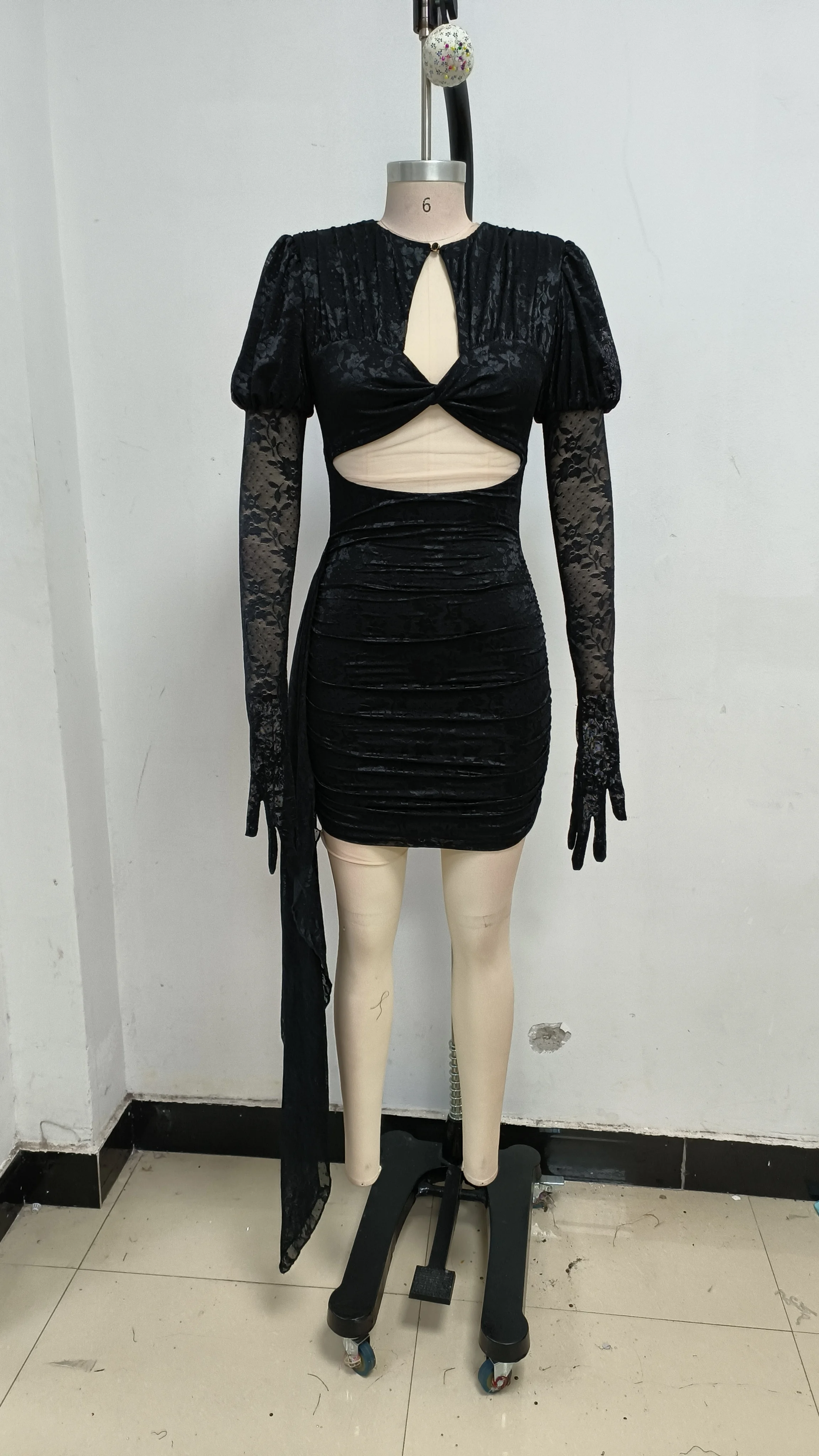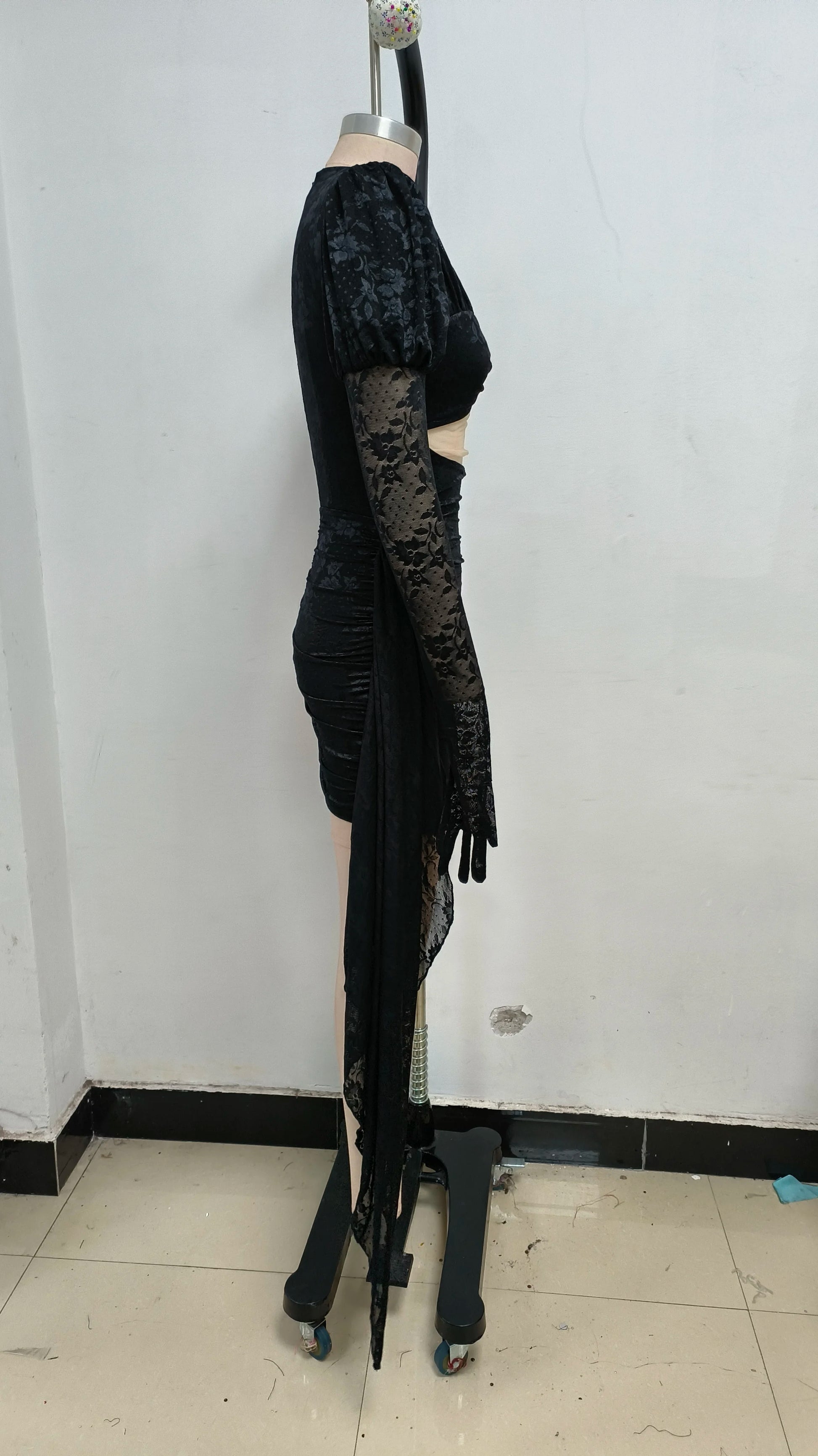 High Quality Lace Draped Bodycon Mini Dress + Gloves