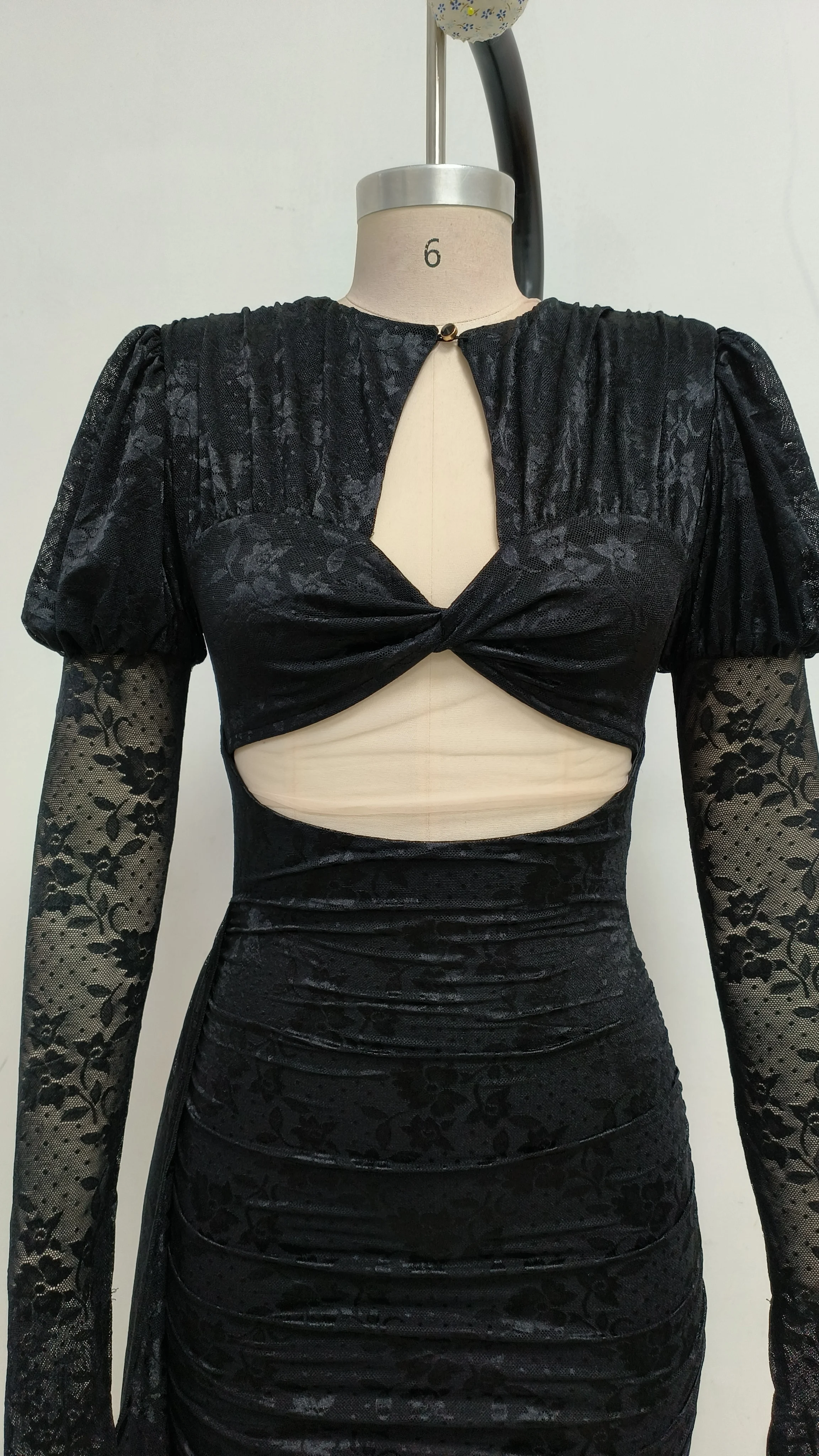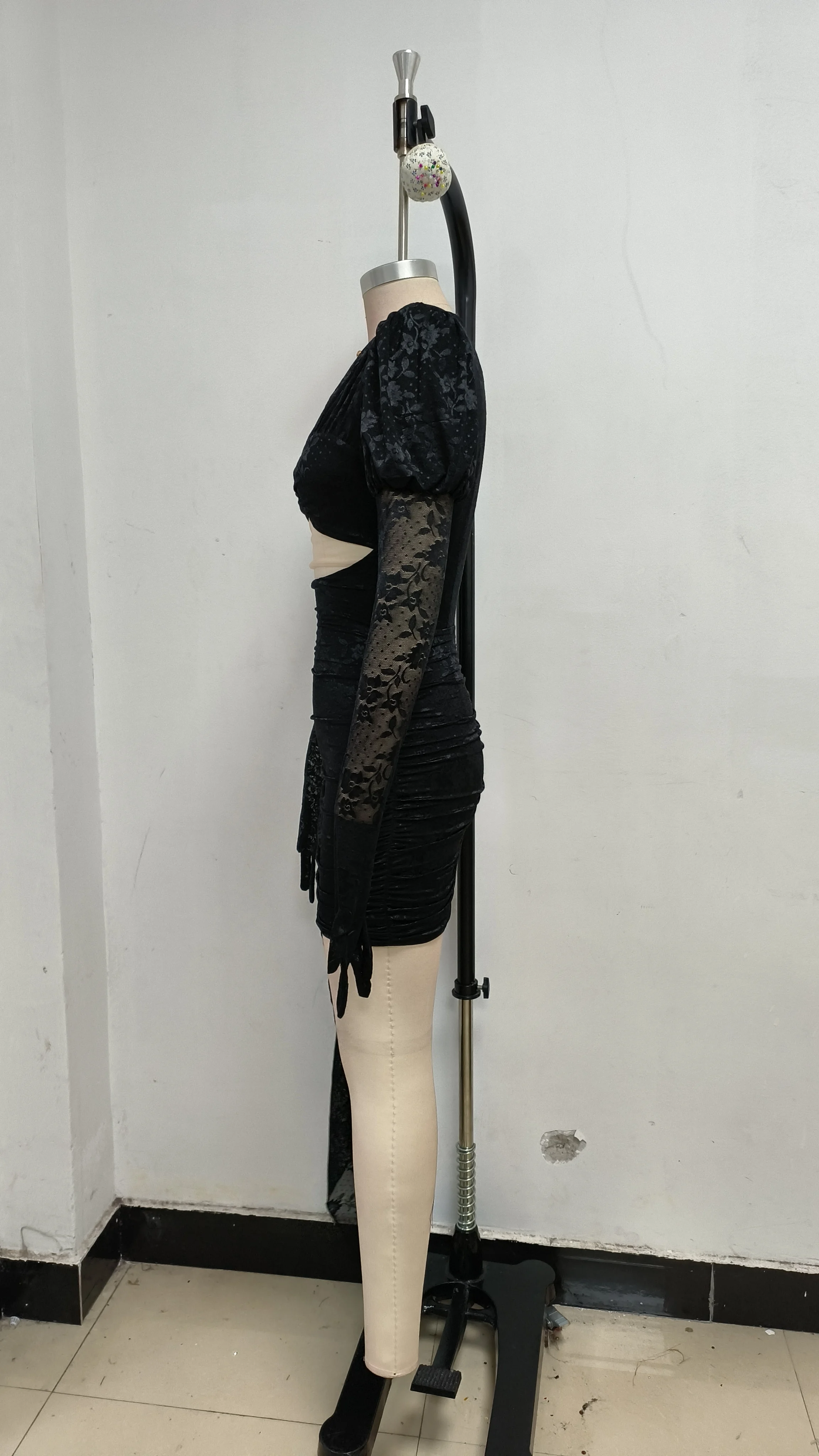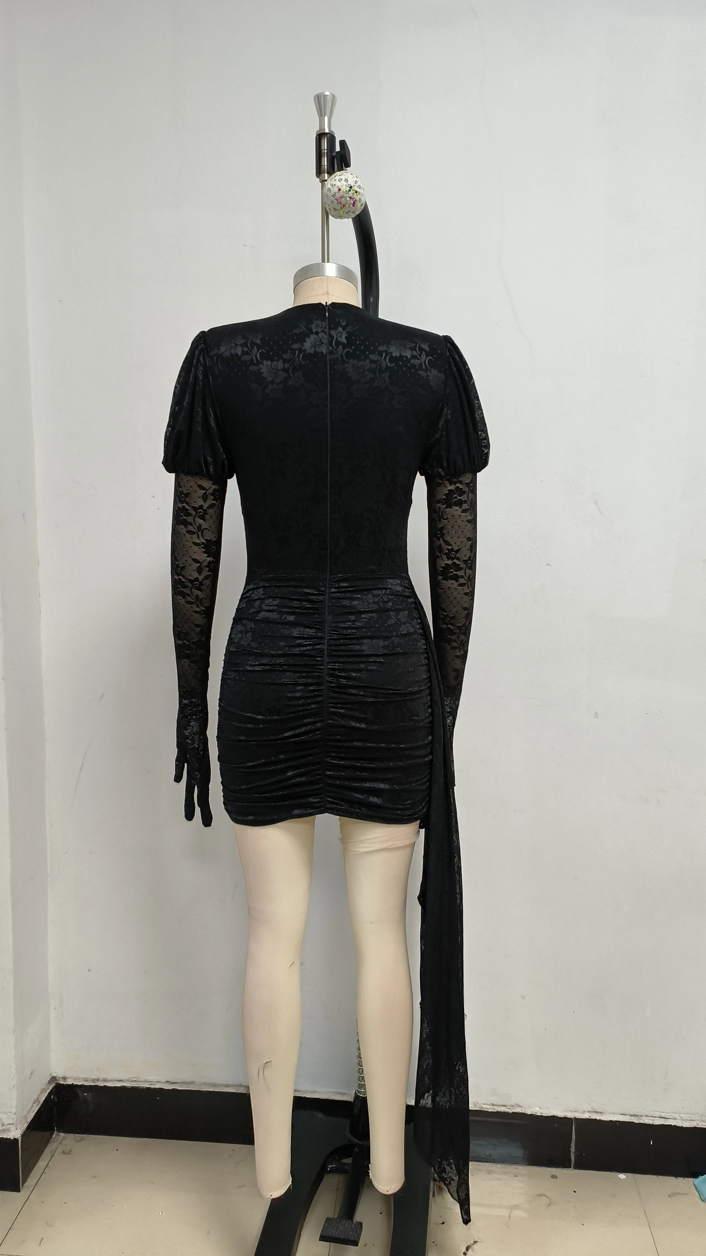 High Quality Lace Draped Bodycon Mini Dress + Gloves