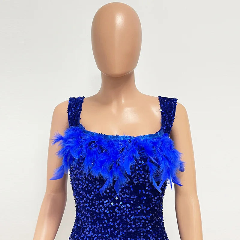 Short Sequins Halter Feathers Spicy Dresses