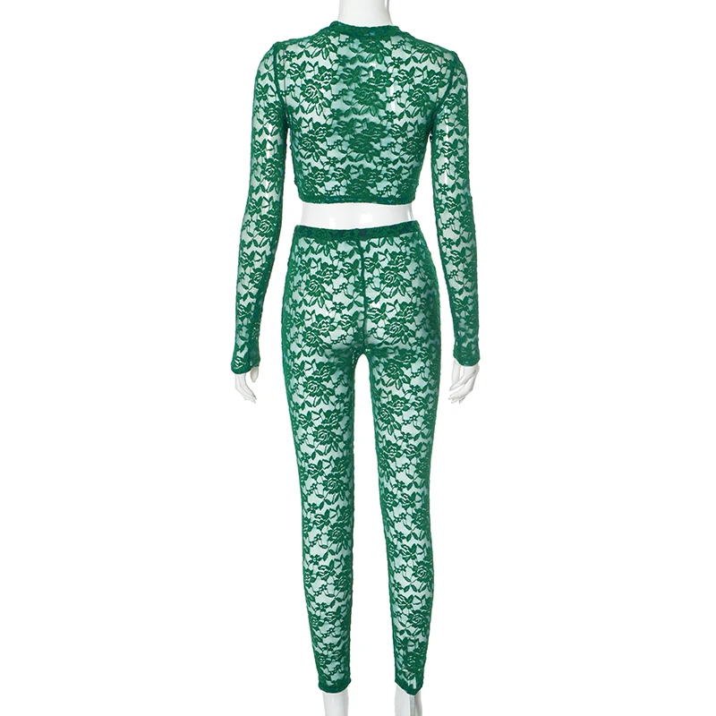 See Through O-Neck Crop Tops+Leggings Skinny Stretch Matching Midnight Party Clubwear