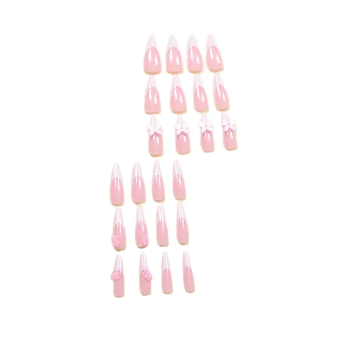 24 Pieces Of Long Pointed Armor White French 3d Nails