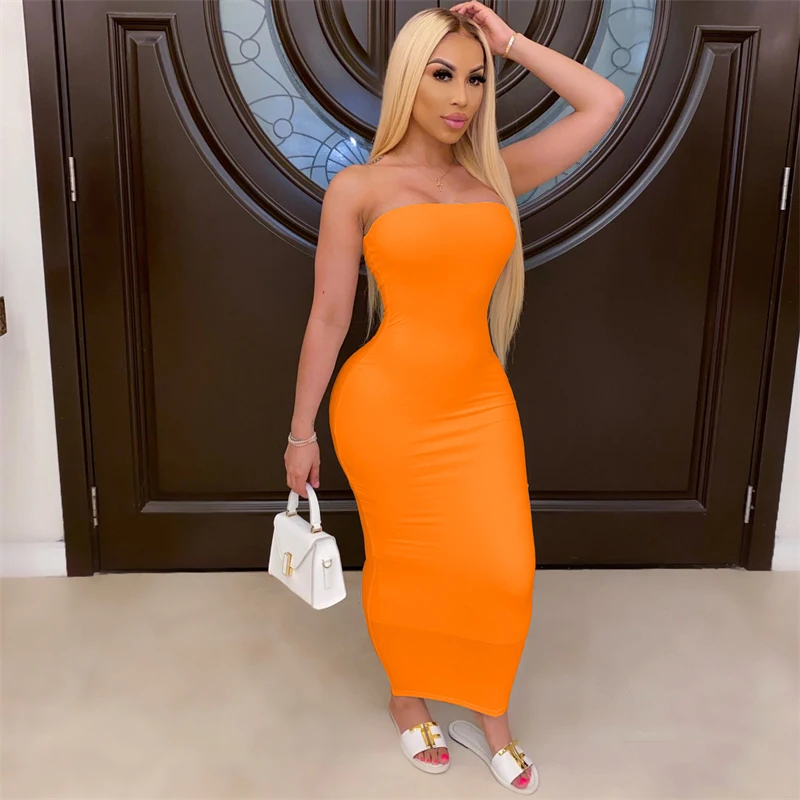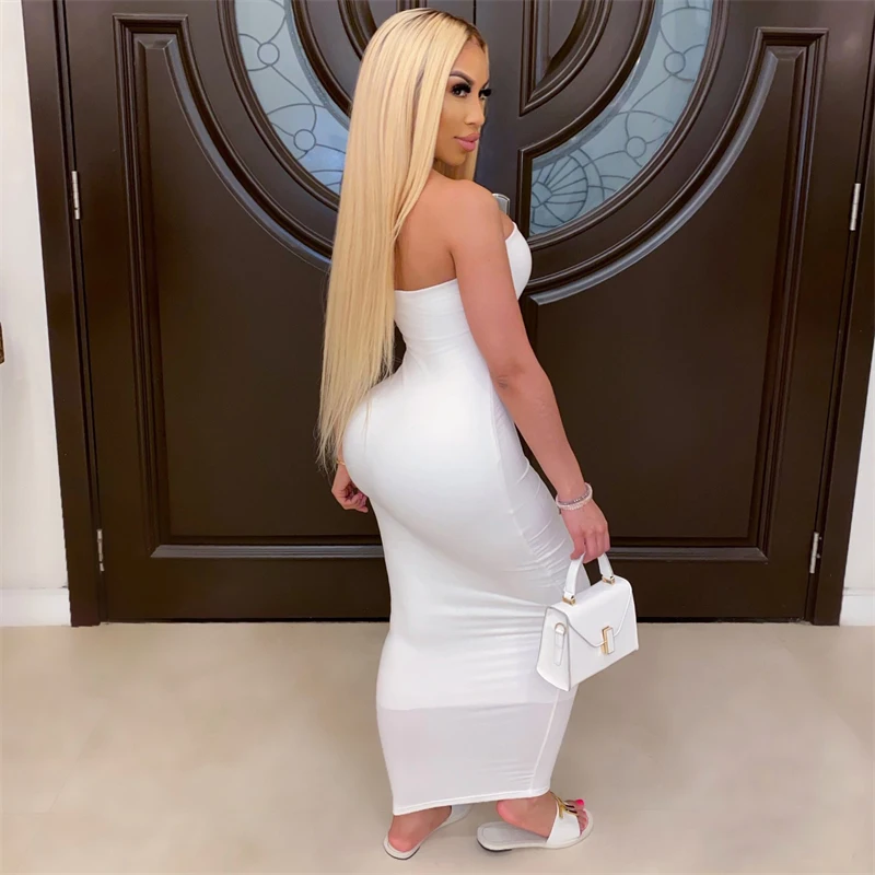 Elegant Sleeveless Strapless Bodycon Maxi Dresses