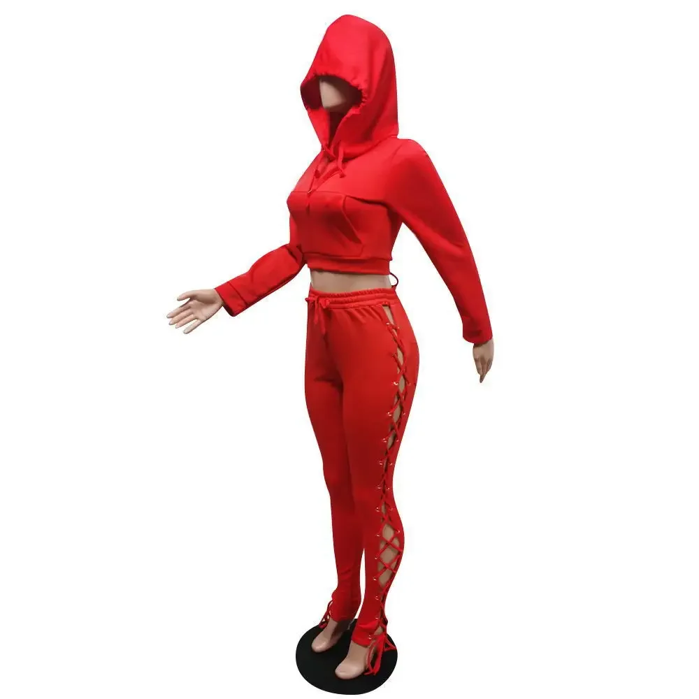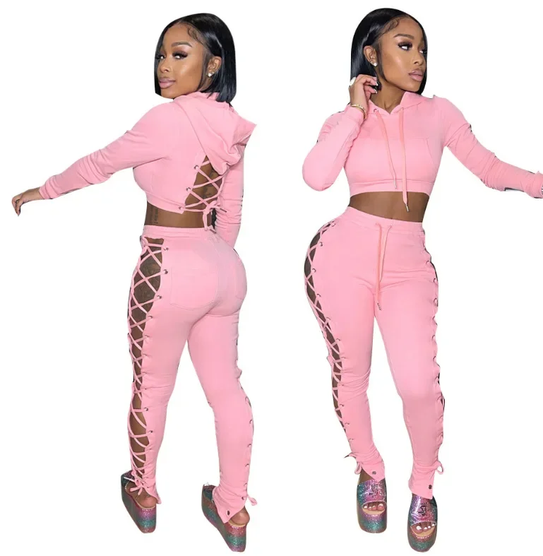 Cross-Border Tied Tops + Pants Hollow Sets(2 Piece Set)