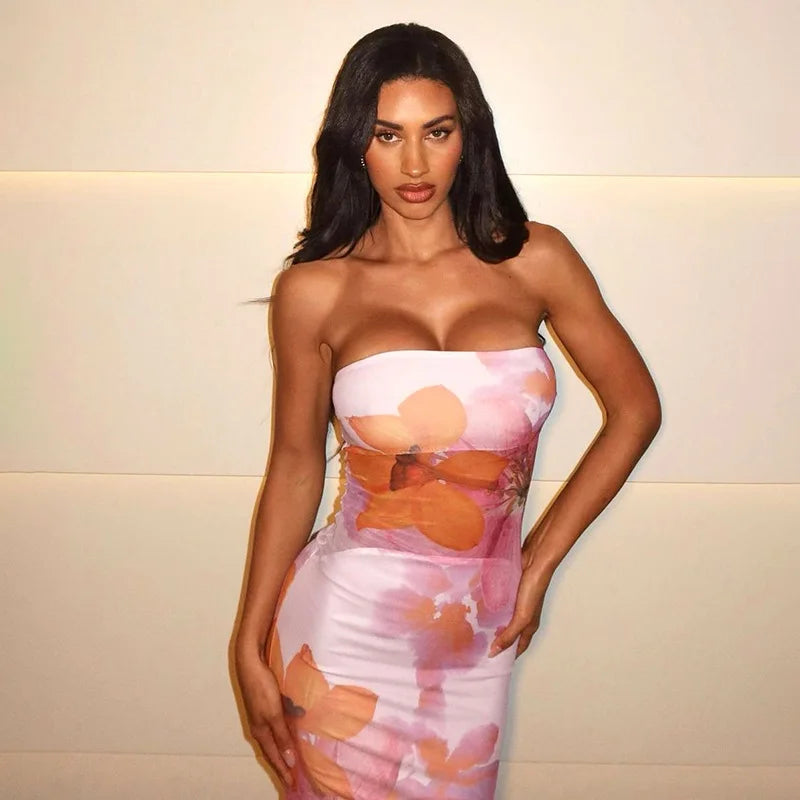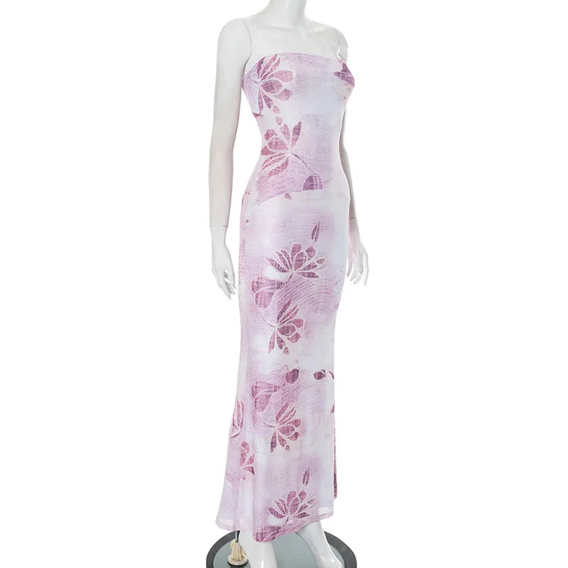 Floral Long Slim Bodycon Backless Maxi Dresses