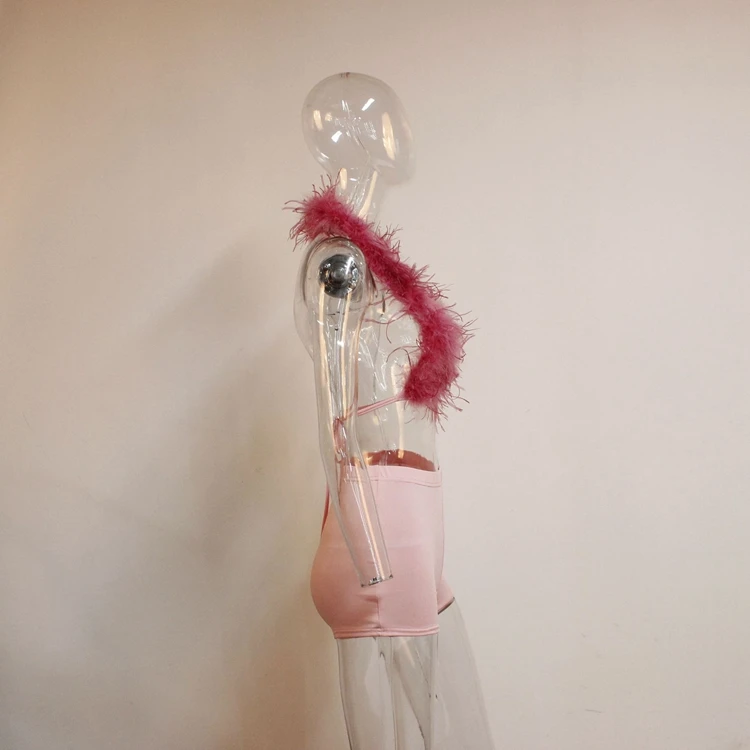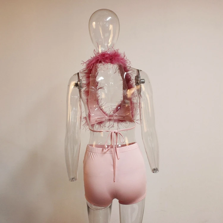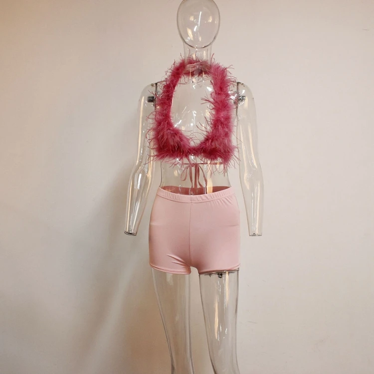 Fur Hollow Out 2 Piece Set Women Sleeveless Crop Top and Shorts Suits