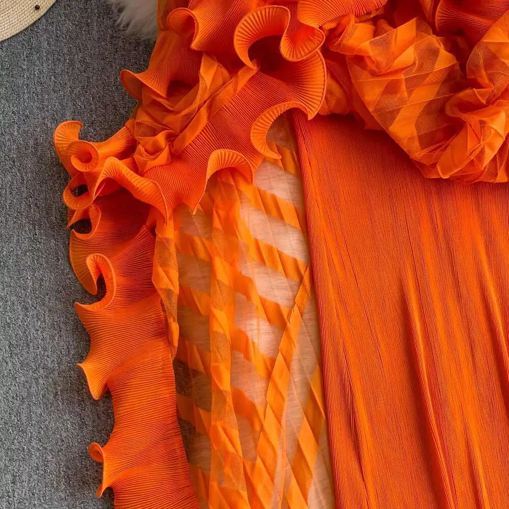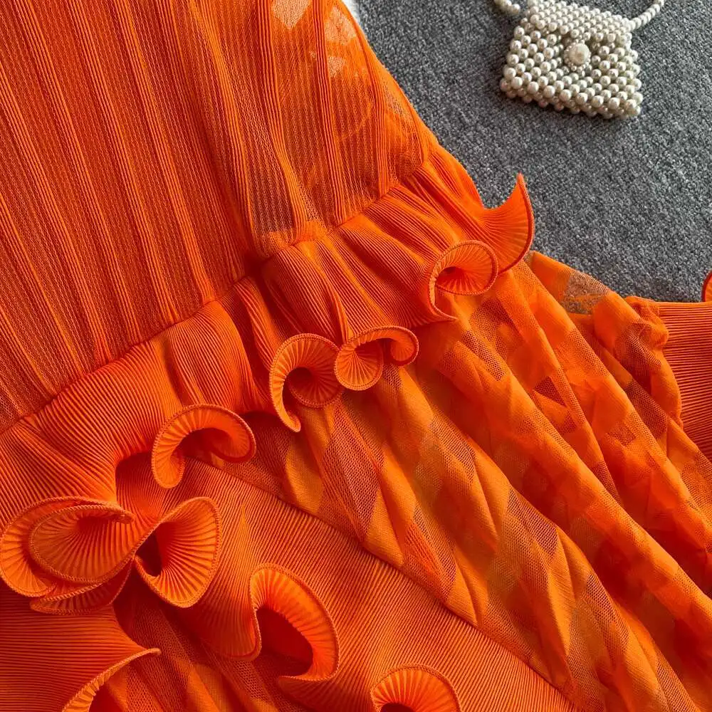 American Style V-neck Irregular Hem Design Dresses 22D1845