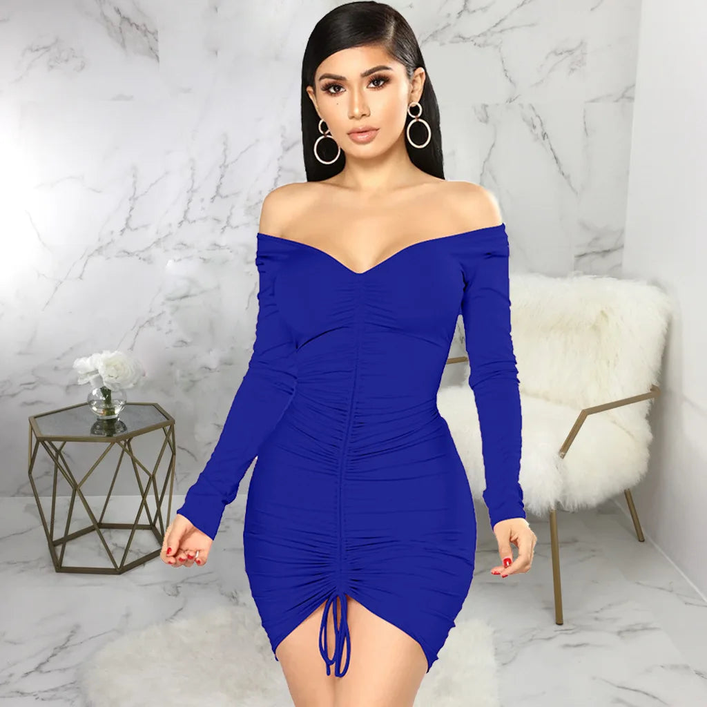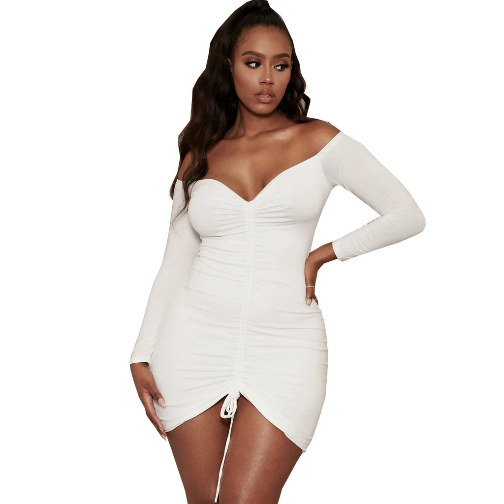 Big V-neck slightly wrinkled chest wrap dresses