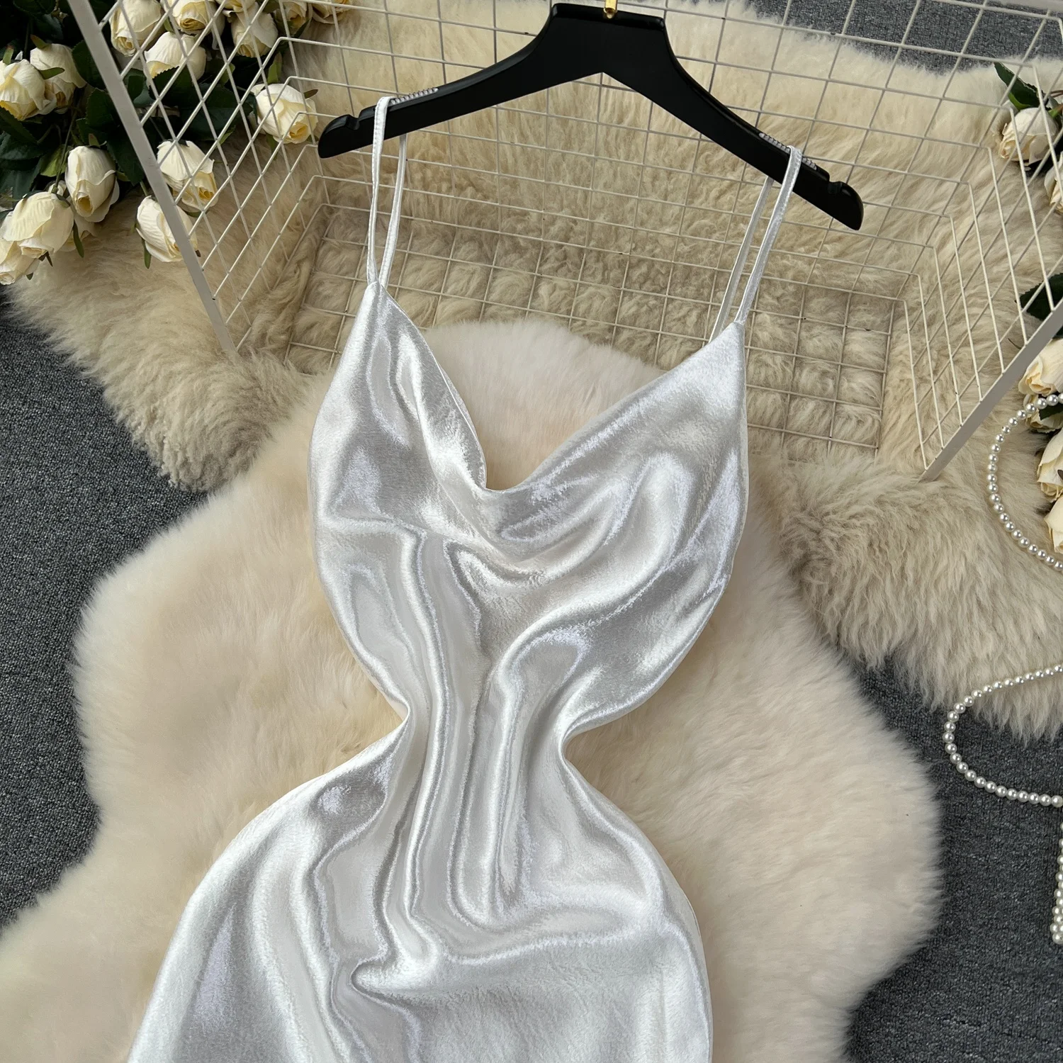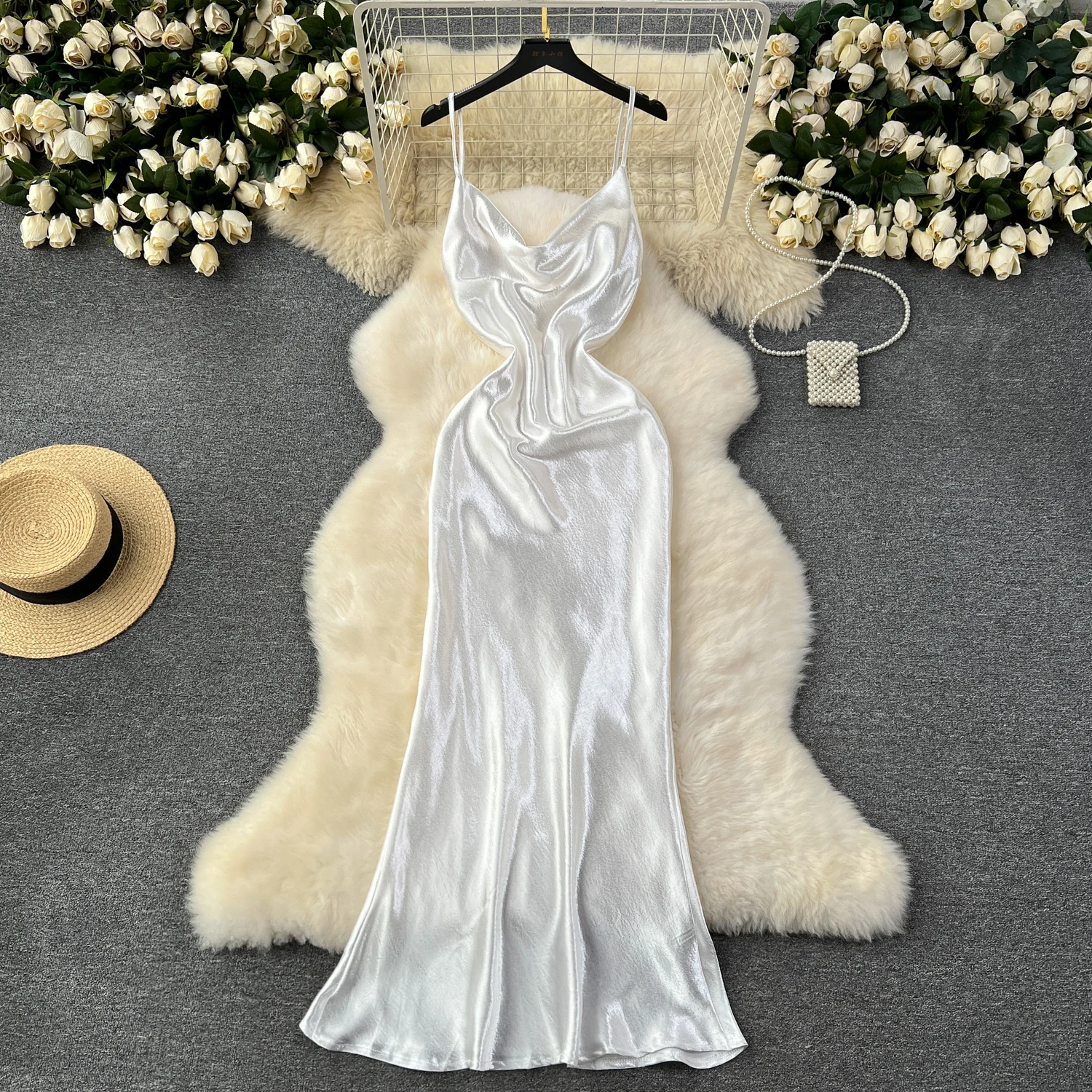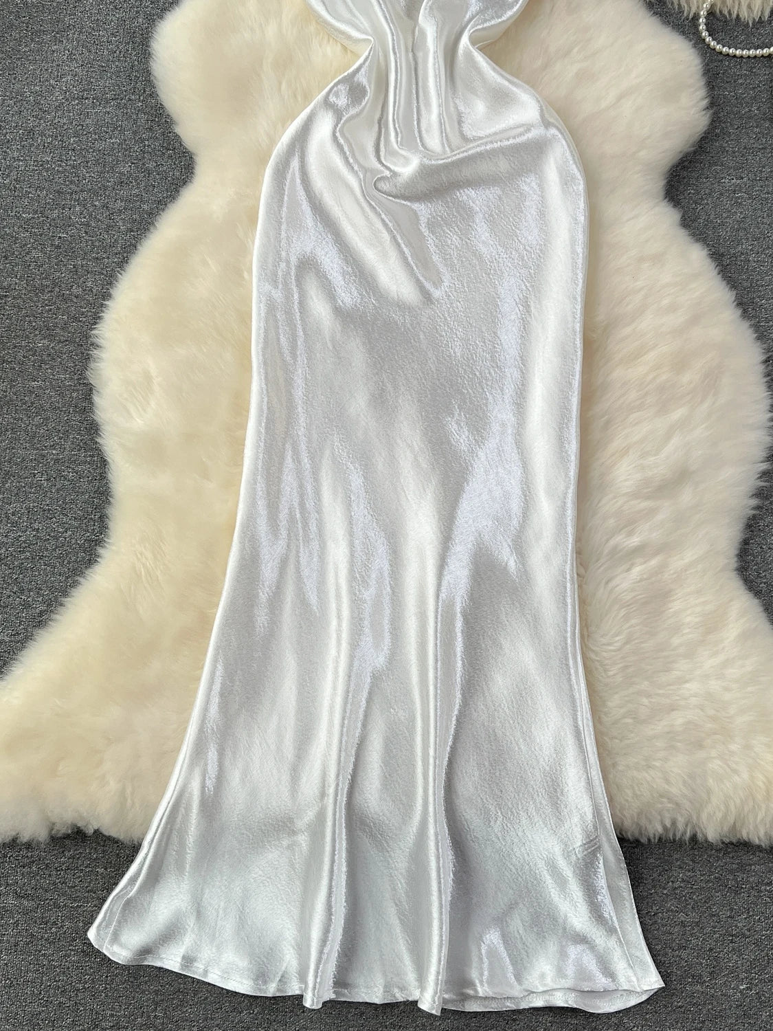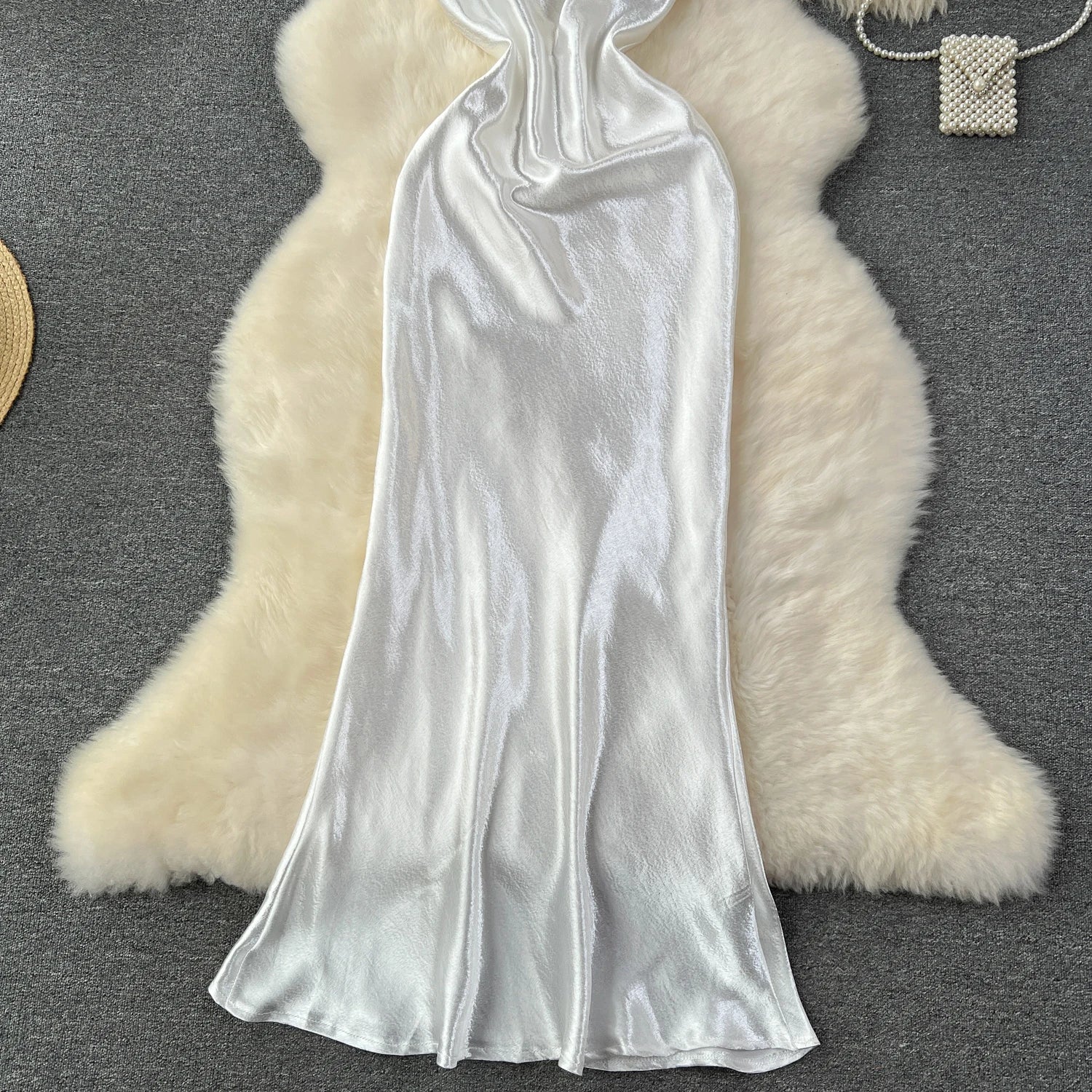 Crafted from luxurious satin, this dress exudes sophistication and comfort, making it ideal for special occasions.
