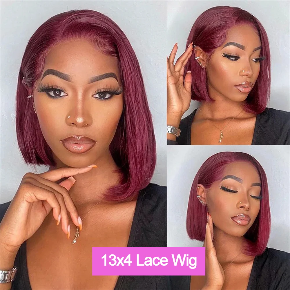 99J Burgundy colour Bob Wig Glueless 13x4 Lace Frontal Bob Wigs 100% Brazilian Human Hair Straight Short Wine Red wig of Women