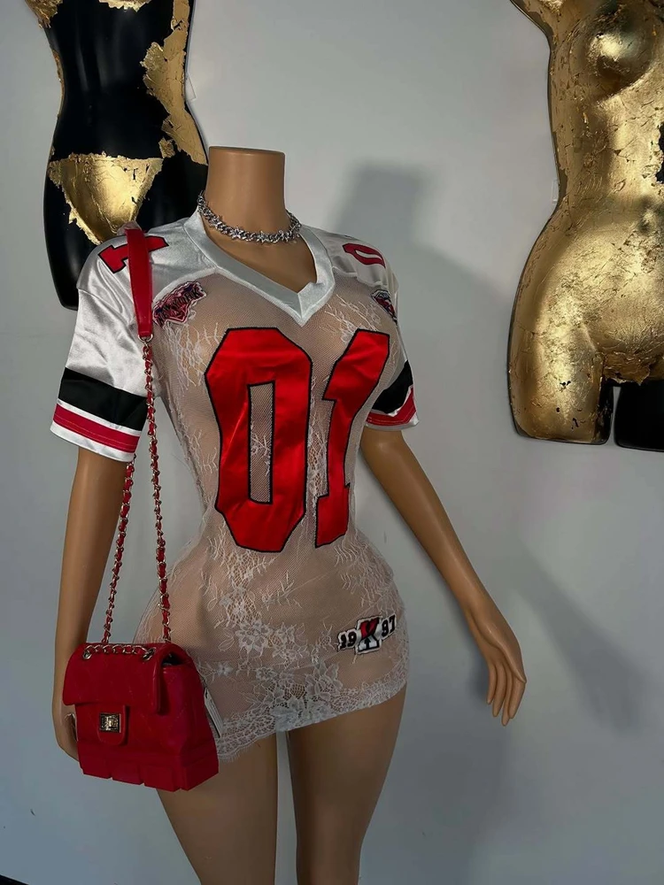Short Sleeve V Neck Bodycon Sexy Club Party See Through Mini Dresses