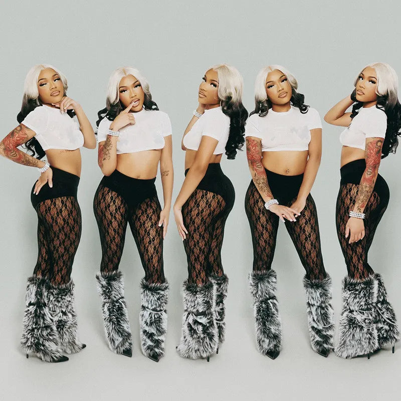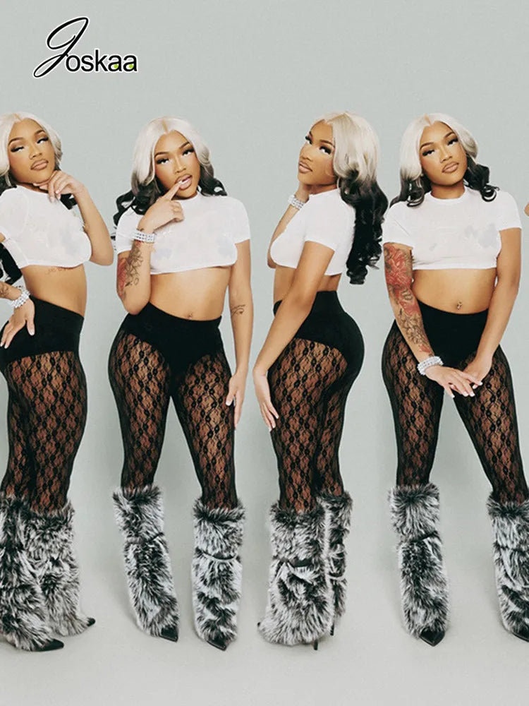 Joskaa Women's Jacquard Lace Leggings Patchwork Sexy See Through High Waist Pencil Pants Female Bottoms Midnight Party Clubwear