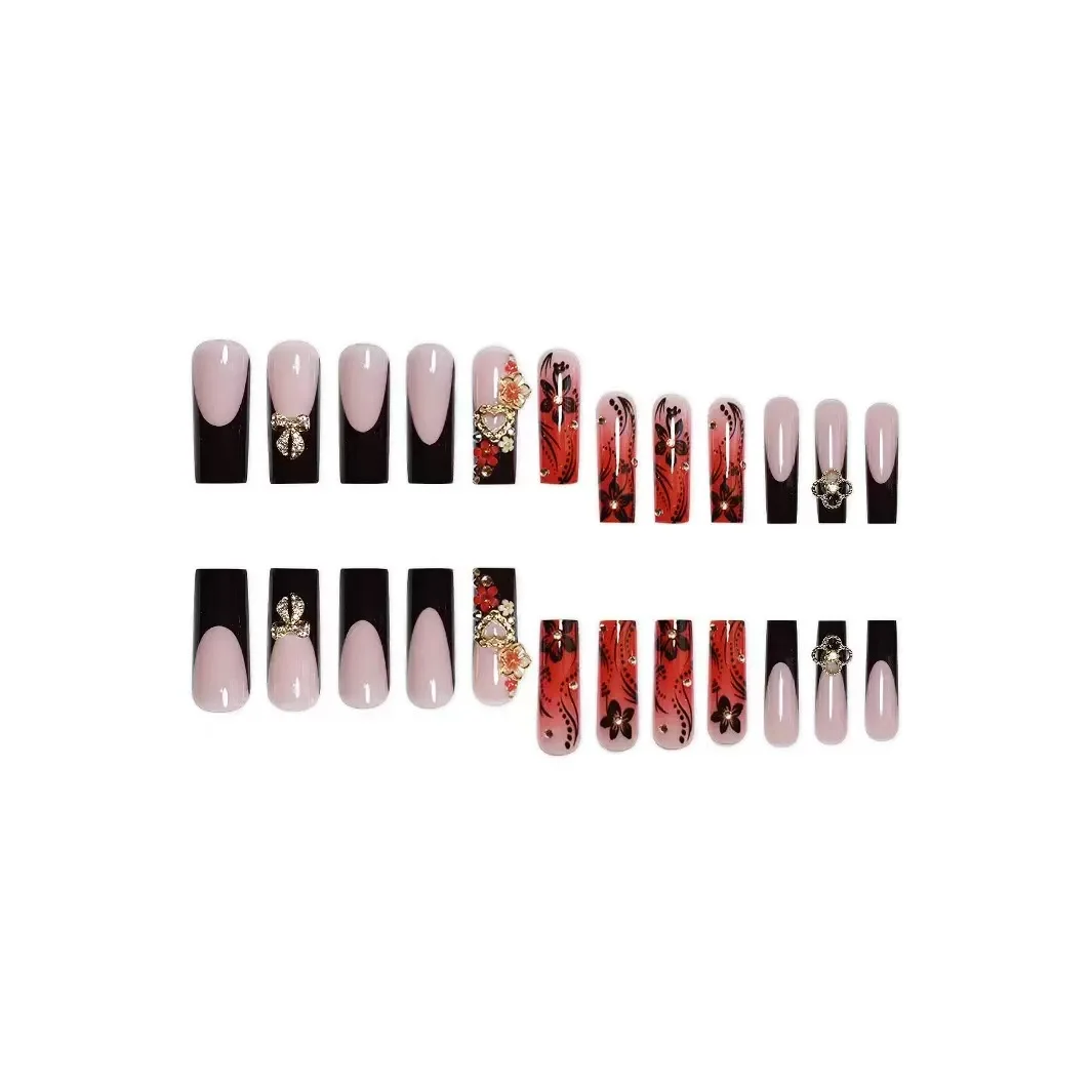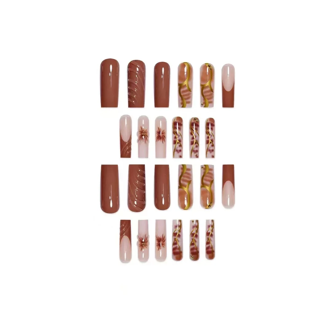 Long Coffin Press-On Nails for Girls Trendy INS Style Nails for Women Hot Girl Nail Tips with Glue