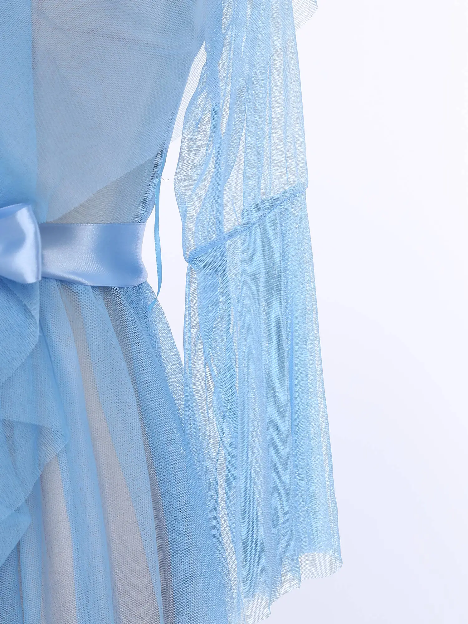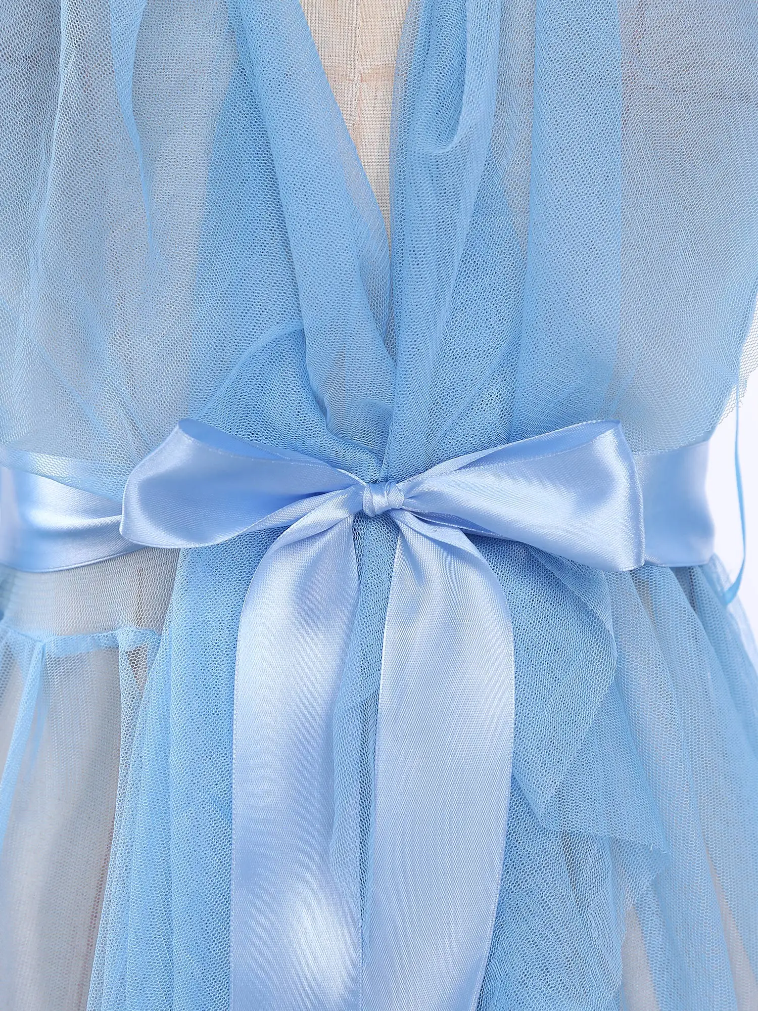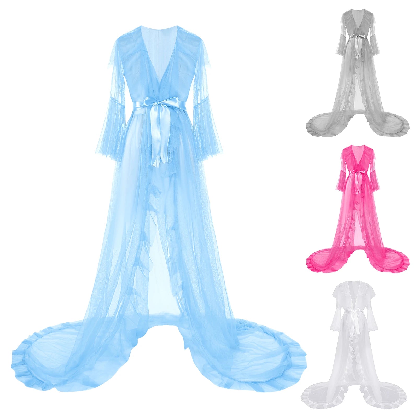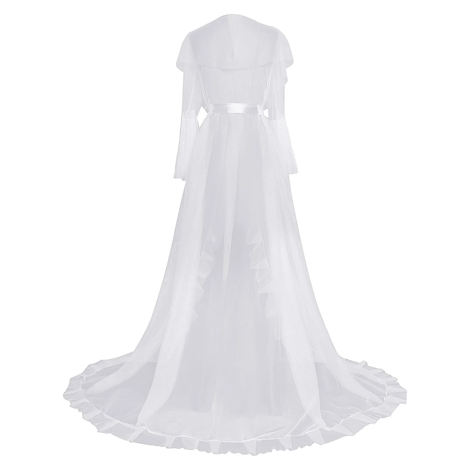 Ruffled Trim Long Tulle Robe Femme Nightwear Nightdress
