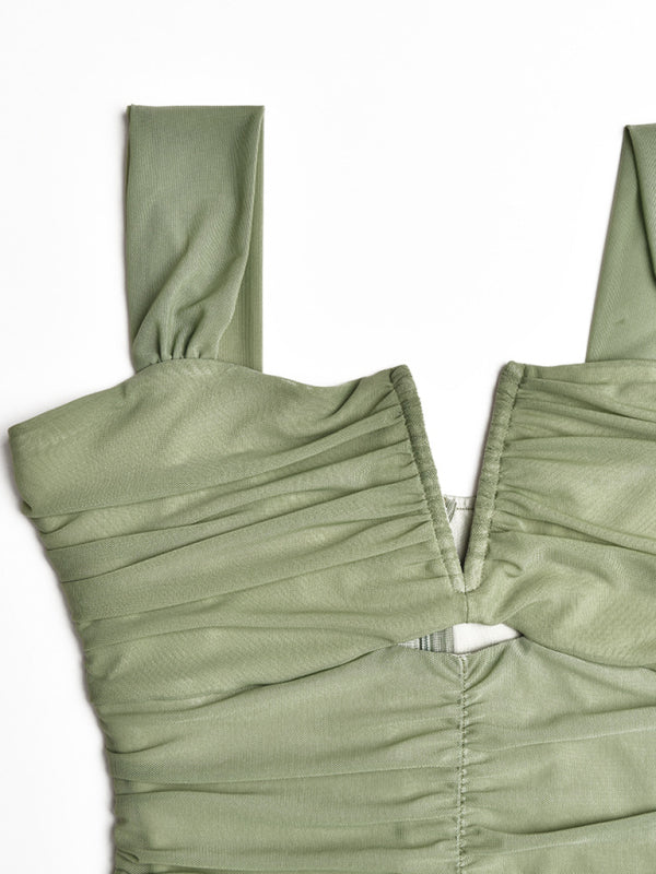 Suspender stitching fashion sexy hot girl tight pleated fishtail dress