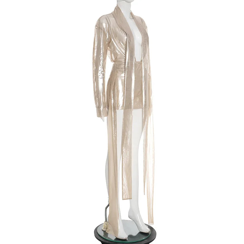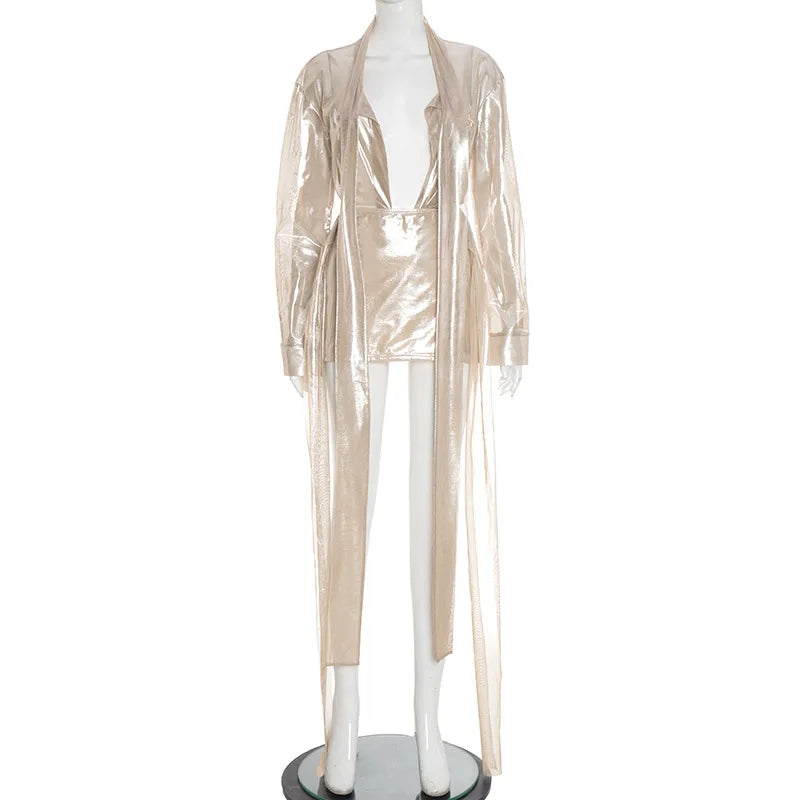 Tassel Patchwork 2 Piece Sets Women Outfit See Through Long Sleeve Crop Top + Skirt Suits Female Streetwear New