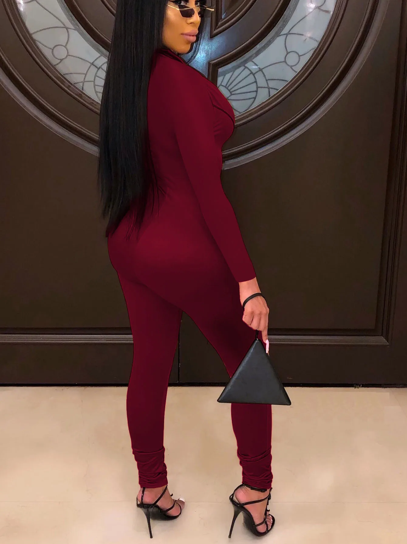 Stylish and sleek design with a solid color and zipper closure